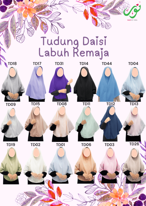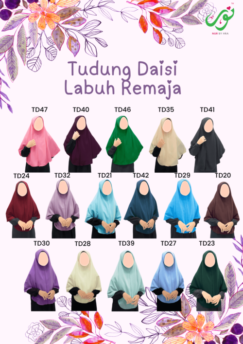 | Color | TD01 WHITE, TD02 CREAM, TD03 PINK, TD04 LIGHT BLUE, TD06 PEACH, TD08 SOFT PEACH, TD09 SOFT GREY, TD11 LIGHT GREEN, TD12 DARK BLUE, TD13 VERY SOFT PINK, TD14 BLACK, TD15 BOLD CHOC, TD17 SOFT PURPLE, TD18 MEDIUM GREY, TD19 SUGAR CANE, TD20 DARK CHOC, TD21 BLUE TURQUOISE, TD23 DARK GREEN, TD24 MAROON, TD26 SOFT CHOC, TD27 BLUE, TD28 BUTTER CREAM, TD29 BOLD TURQOISE, TD30 PURPLE CABBAGE, TD31 EGGPLANT PURPLE, TD32 PURPLE BELACAN, TD35 MILKY YELLOW, TD39 MINT GREEN, TD40 VERY DARK PURPLE, TD41 DARK GREY, TD42 DARK TURQOISE, TD44 BIRU PWS, TD46 GREENERY, TD47 PINK PI |